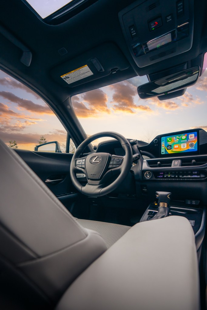 The interior of the UX Hybrid was designed with the driver in mind, featuring ergonomic controls and a dashboard that blends seamlessly into the hood to enhance visibility. Every aspect of the interior is crafted to anticipate your needs, ensuring a comfortable and intuitive driving experience.